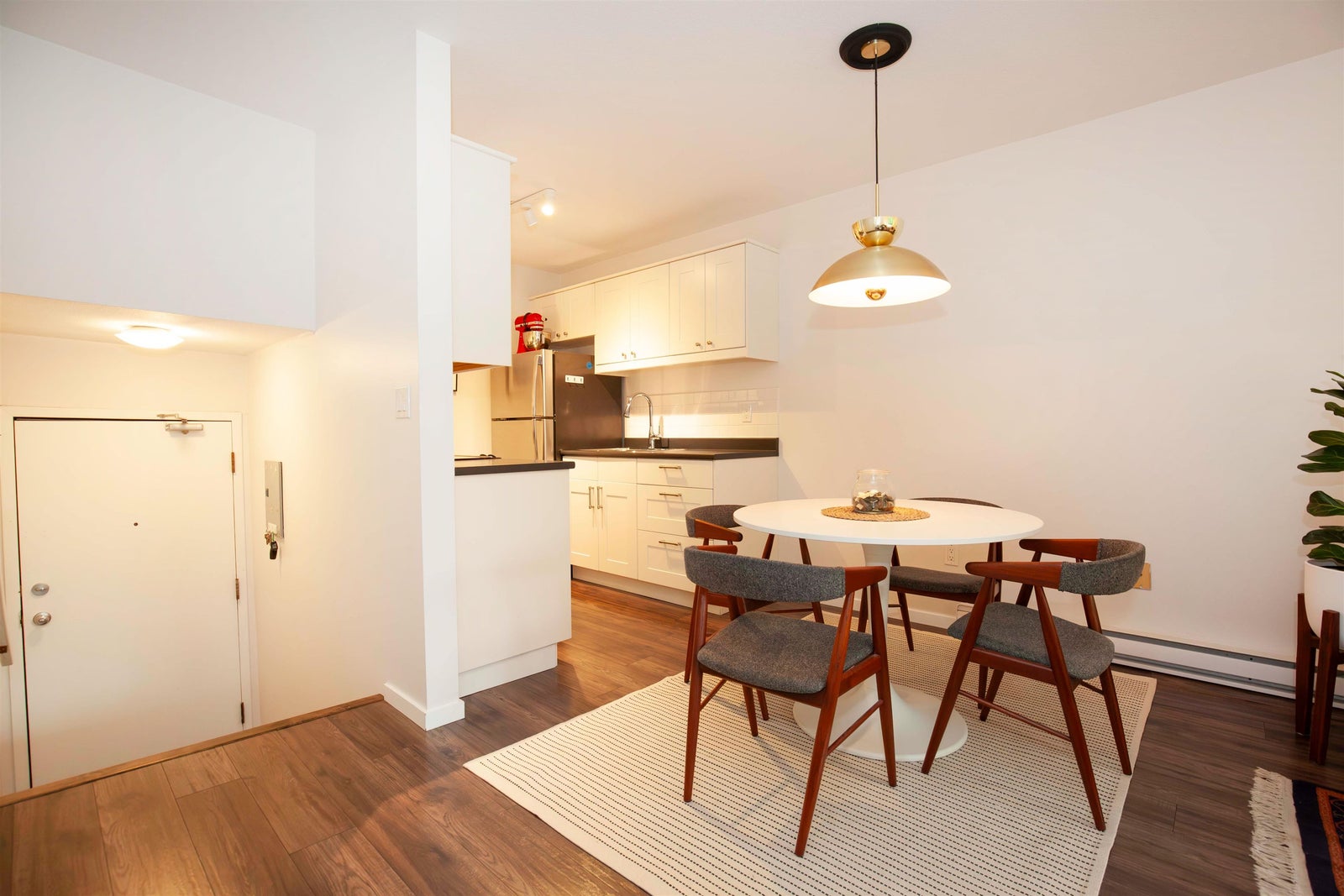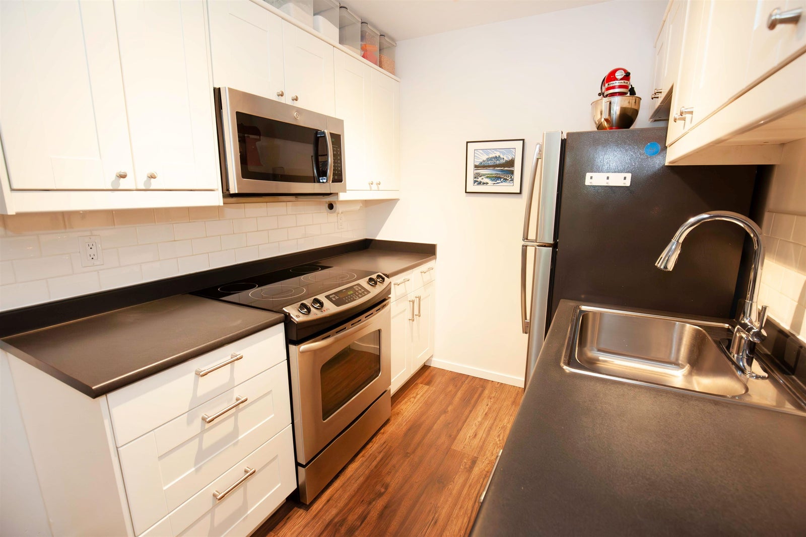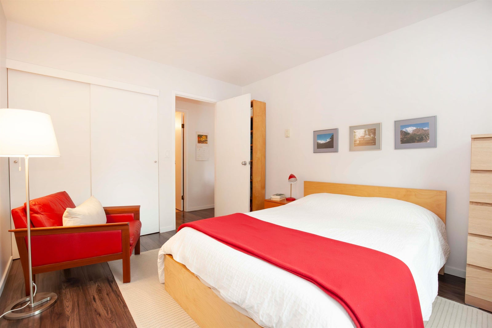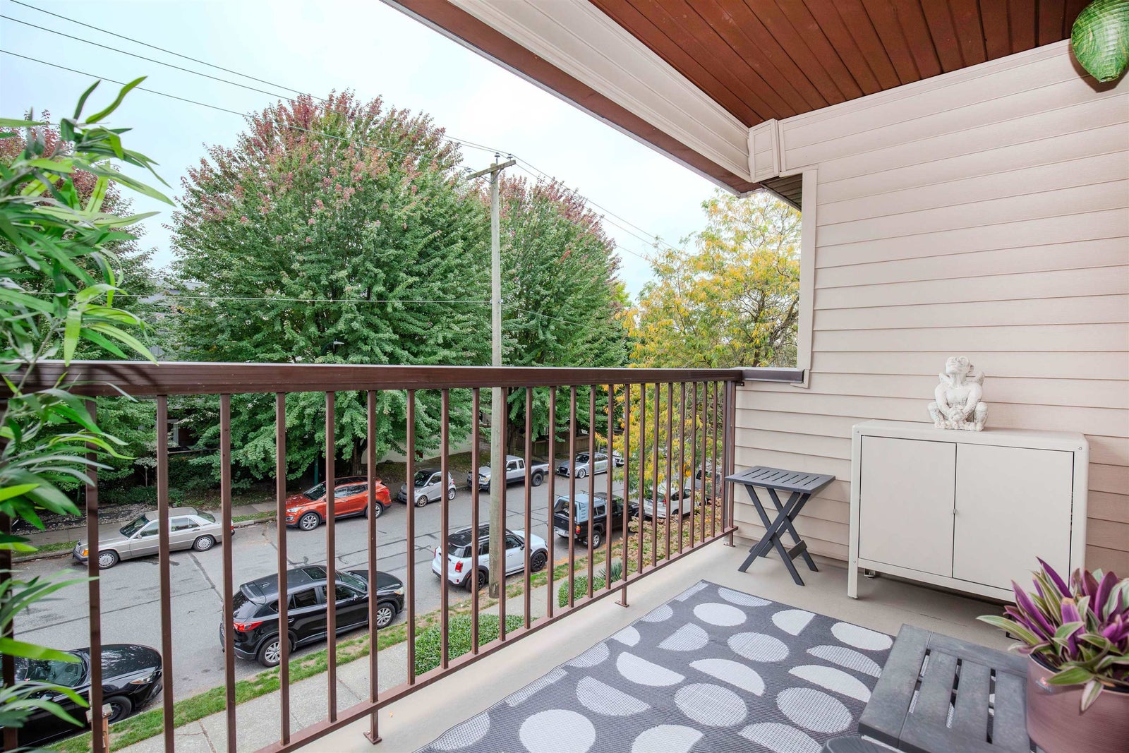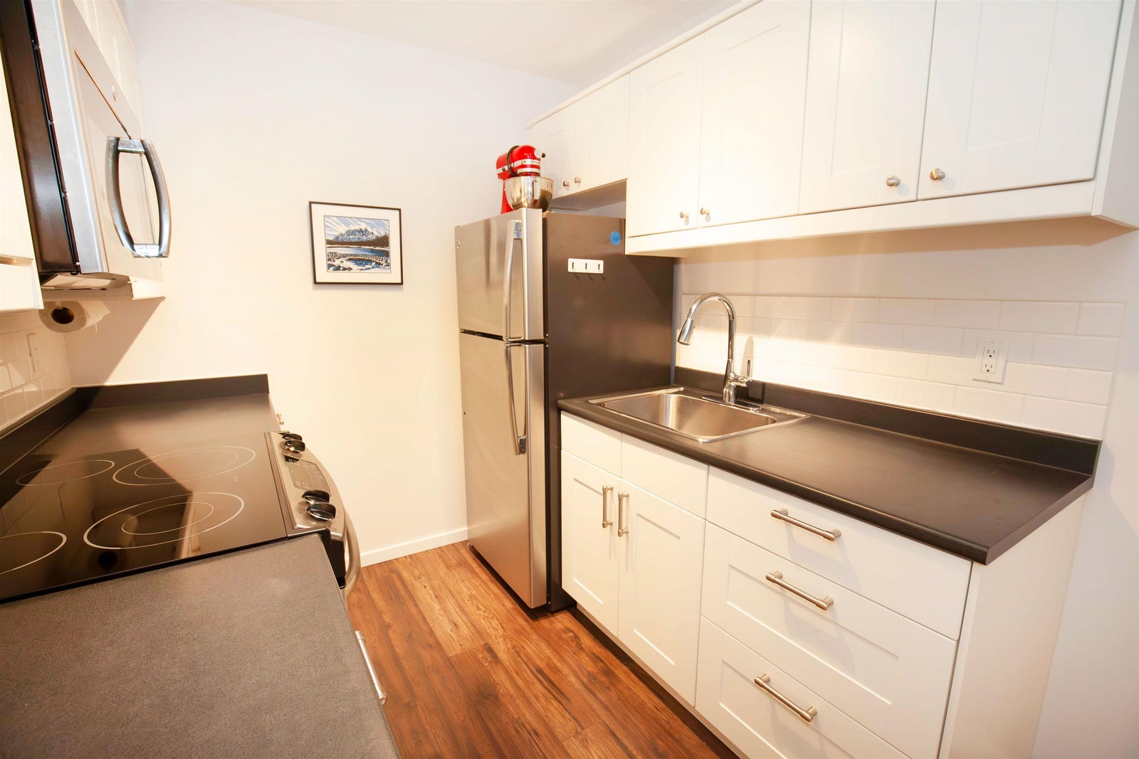 This beautifully renovated 1 bedroom condo sits on a quiet tree-lined street and has a smart layout with no wasted space. Top floor and south facing with brand new double pane windows that let in lots of natural light and has a large, covered balcony. Pet friendly building, with one dog or two cats allowed. 1 parking 1 storage. Well maintained building with recent upgrades including all windows and patio doors, new roof and common areas updated throughout, and exterior of building painted. Fantastic location, walkable to some great restaurants, shops and parks. Open House Sun Oct 5 2-3pm